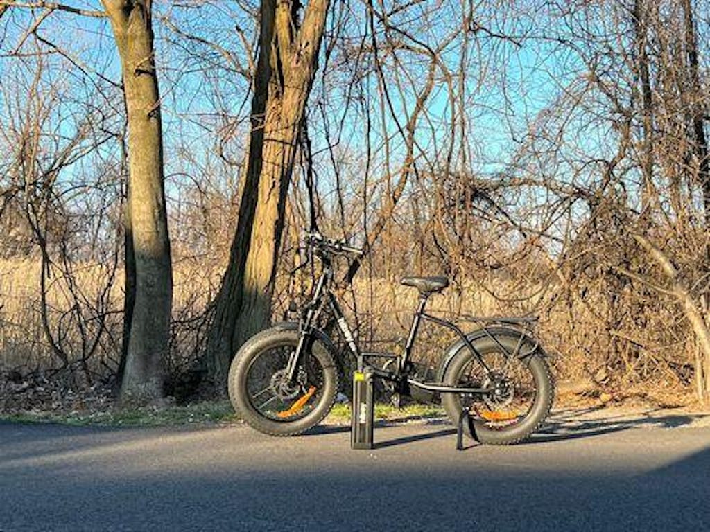 Yes! The 20" x 4" fat tires provide excellent traction and stability on dirt paths, gravel, sand, and snow, making it great for all-terrain adventures.