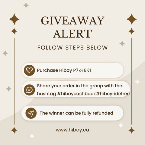 , taguez #hiboy #hiboycashback #hiboyridefree , et mentionnez Hiboy – vous êtes officiellement en lice !