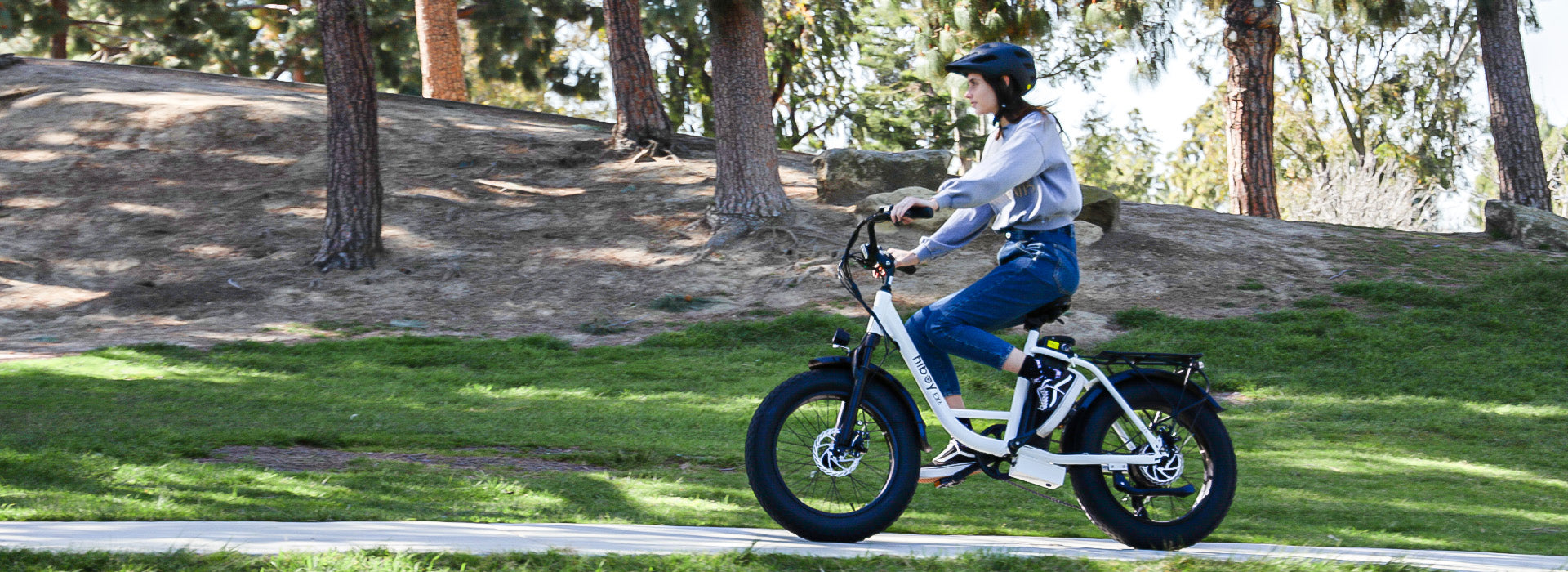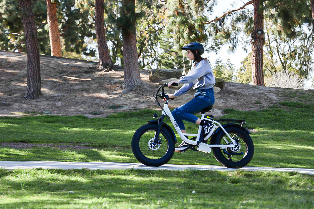 Yes! The 20" x 4" fat tires provide excellent traction and stability on dirt paths, gravel, sand, and snow, making it great for all-terrain adventures.